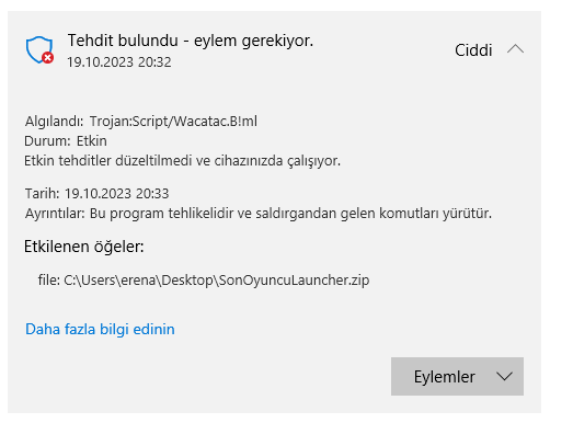 Bu dosyayı kötü amaçlı yazılımlara karşı test etmek için bu dosyayı çevrimiçi olarak Defender ekibine de yükleyebilirsiniz.