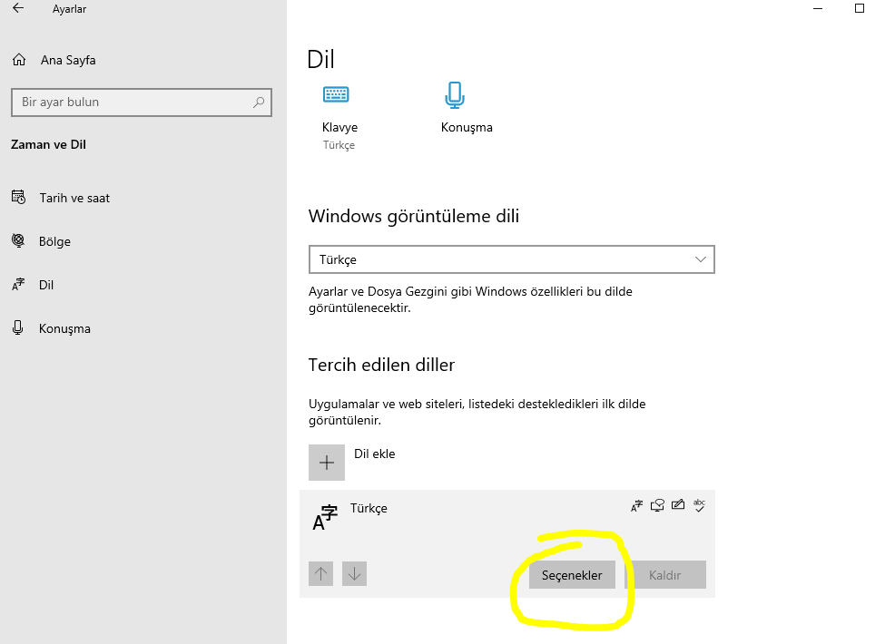 7- Dilin altında Türkçe yazar ona basıp seçeneklere bas.