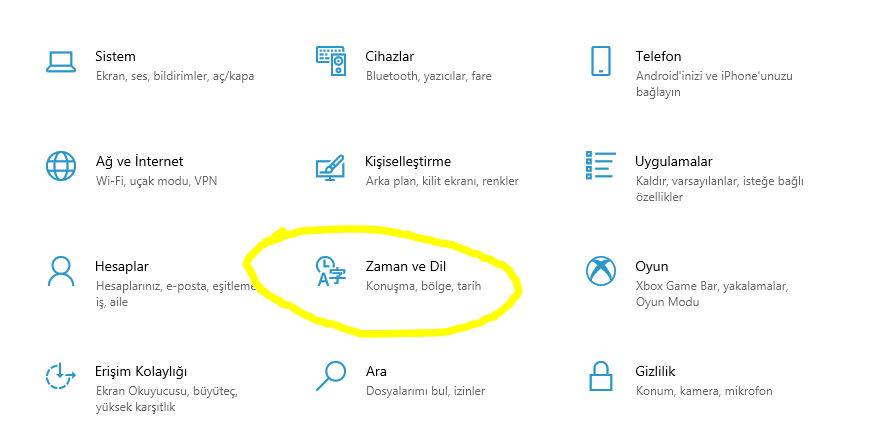 3- Açılan ekranda Zaman ve Dil seçeneğine bas,