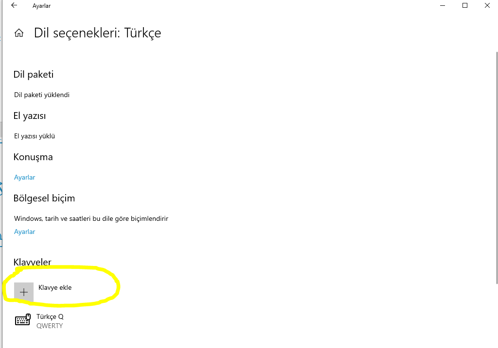 Son olarak açılan ekranda Klavye ekleye basarak ekleme işlemini yapabilirsin.