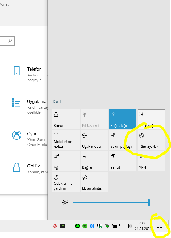 2- Açılacak olan menüde Tüm Ayarlar a bas,