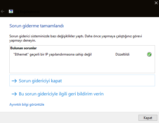 netsh int ip sıfırlama