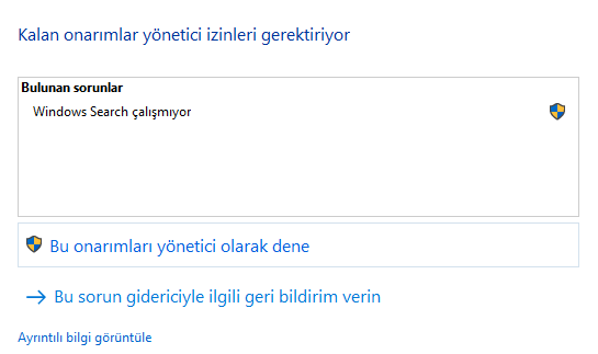 Bilgisayarı güncelledikten sonra başlata tıkladığımda yazı yazınca direk arama butonu çıkıyordu fakat bilgisayarımda hiç bir şekilde hiç bir yerde arama yapamıyorum.