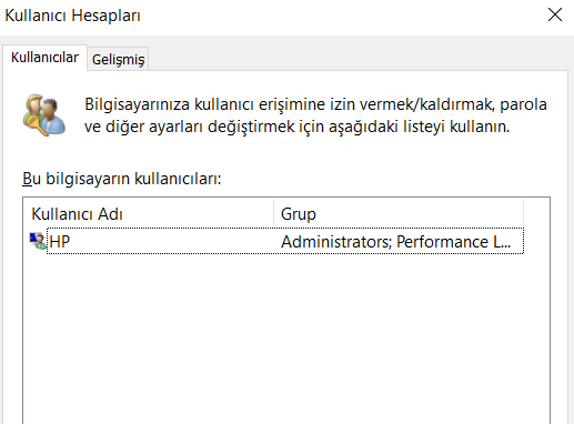 Girişte görünen bu "HP", bilgisayara giriş yapmak için kullandığınız Kullanıcı hesabıdır. Bilgisayar Adı bir Kullanıcı hesabından farklıdır.