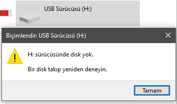 Tekrar biçimlendirmeye çalıştığımda hatası aldım