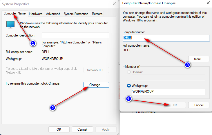 Ortaya çıkan yardımcı programda, 'Bilgisayar Adı' sekmesini seçin ve 'Değiştir' düğmesini tıklayın.