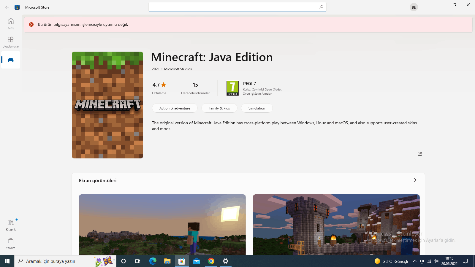 win10 pro kullanıyorum microsoft store dan minecraft java edition yüklemek istedim ama yukarıda ''bu ürün bilgisayarın işlemcisi ile uyumlu değil'' diye bir yazı yazıyor ve yükle butonu diye birşey yok yardımcı olabilir misiniz