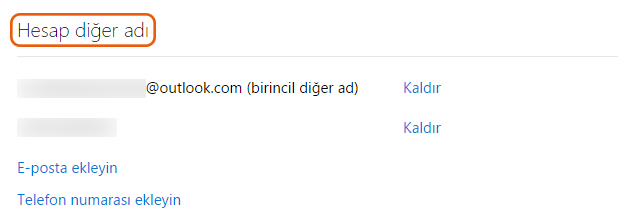 Hesabınıza eklediğiniz diğer adları yönetmek için aşağıdaki yönergeleri uygulayınız.