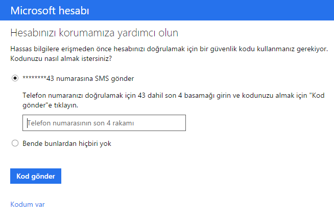 doğrulaması istenirse, lütfen telefonunuza kod gönderin ve doğrulayın.