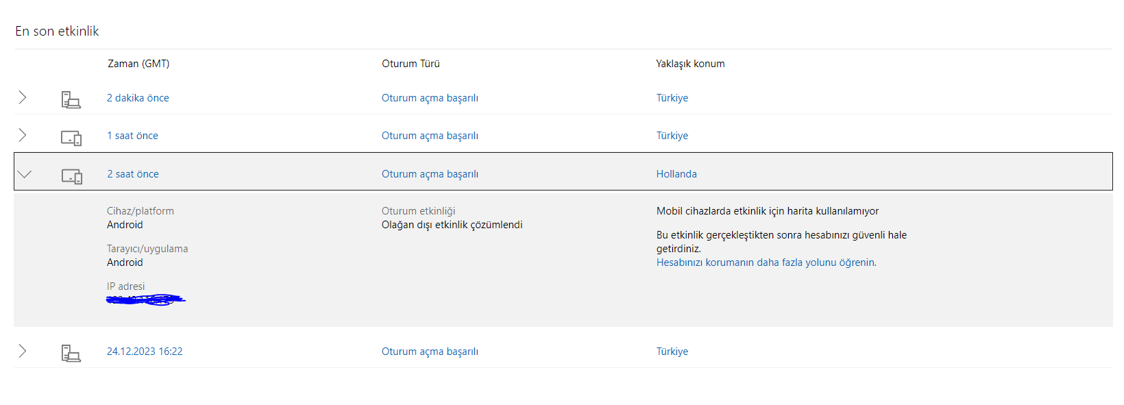 24 saat sonra tüm cihazlardan çıkış yapacaksınız, cihazlarınızda tekrar oturum açmanız gerekecek.