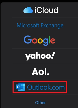 - Hesap Ekle iletişim kutusunda Outlook.com'yi seçin.