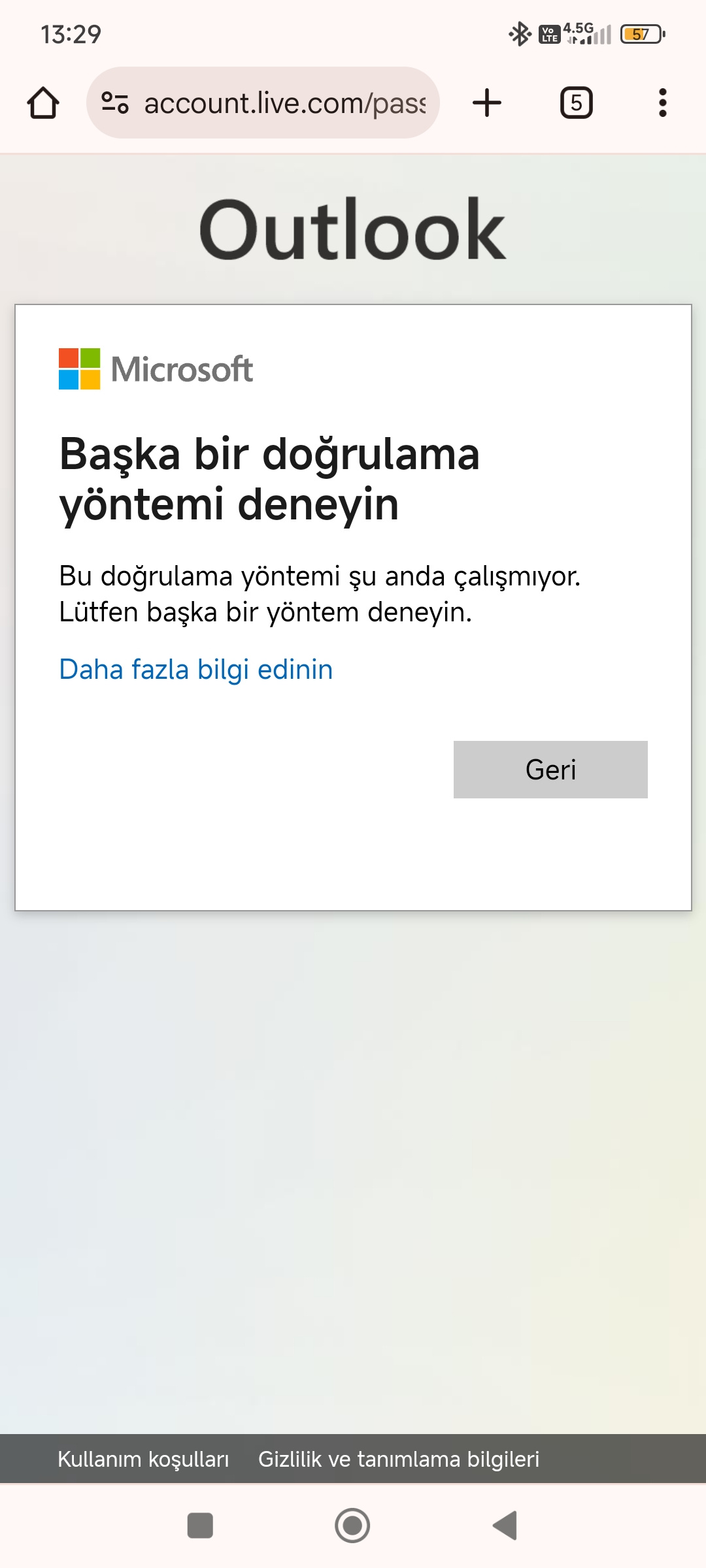 Başka bir bilgisayar, başka bir telefon veya başka bir tarayıcı gibi oturum açmak için cihazınızı değiştirmeniz mümkün müdür? Bu ekran görüntüsü, bir sonraki adımı atlayamayacağınızı açıkça gösteriyor, bu nedenle doğrulama bilgilerini gönderemezsiniz ve bunun nedeni aslında telefonunuzun Microsoft sunucularına olan mevcut bağlantısında bir anormallik olmasıdır.
