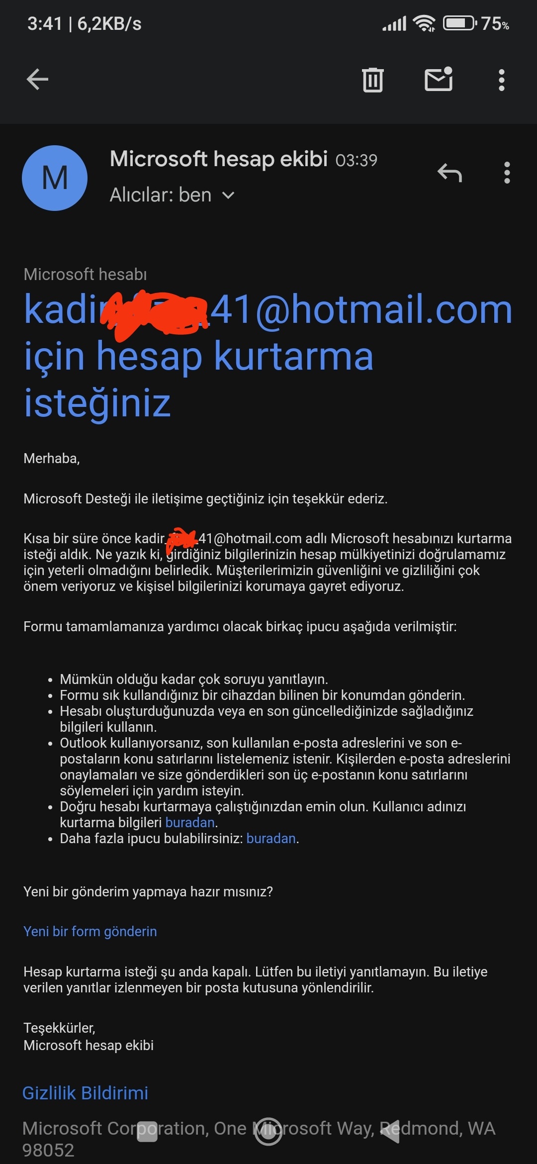 Mevcut durumunuza bağlı olarak, hesabınızın tüm kimliklerini doğrulamak için yeterli bilgiyi sağladıktan sonra size hesap kurtarma için bazı ek yollar sağlayacak olan Microsoft Çevrimiçi Destek'ten yardım almanızı öneririm. Bunları bu bağlantıya tıklayarak ve aşağıdaki talimatları izleyerek bulabilirsiniz