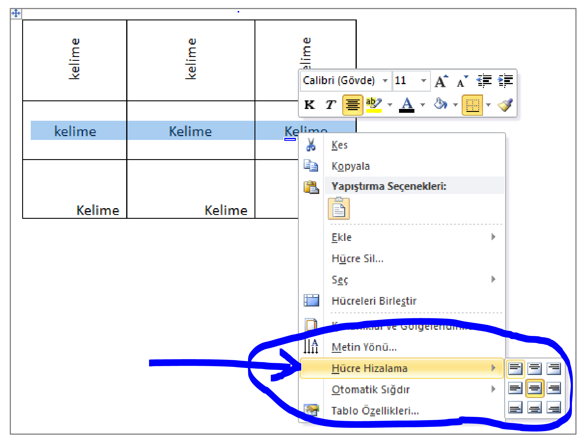 gösterdiğin ilgi ve yardımın için teşekkür ederim. Aslında benim aradığım "hücre hizalama", word'ün eski sürümlerinde vardı fakat son sürümünde bu seçeneği bulamıyorum? Oluşturulan tablonun içinde seçilen metinlere sağ tıklandığında çıkan menü içerisinde vardı, fakat yeni sürümde yok?? Sana bir fikir vermesi için bir resim ekliyorum.