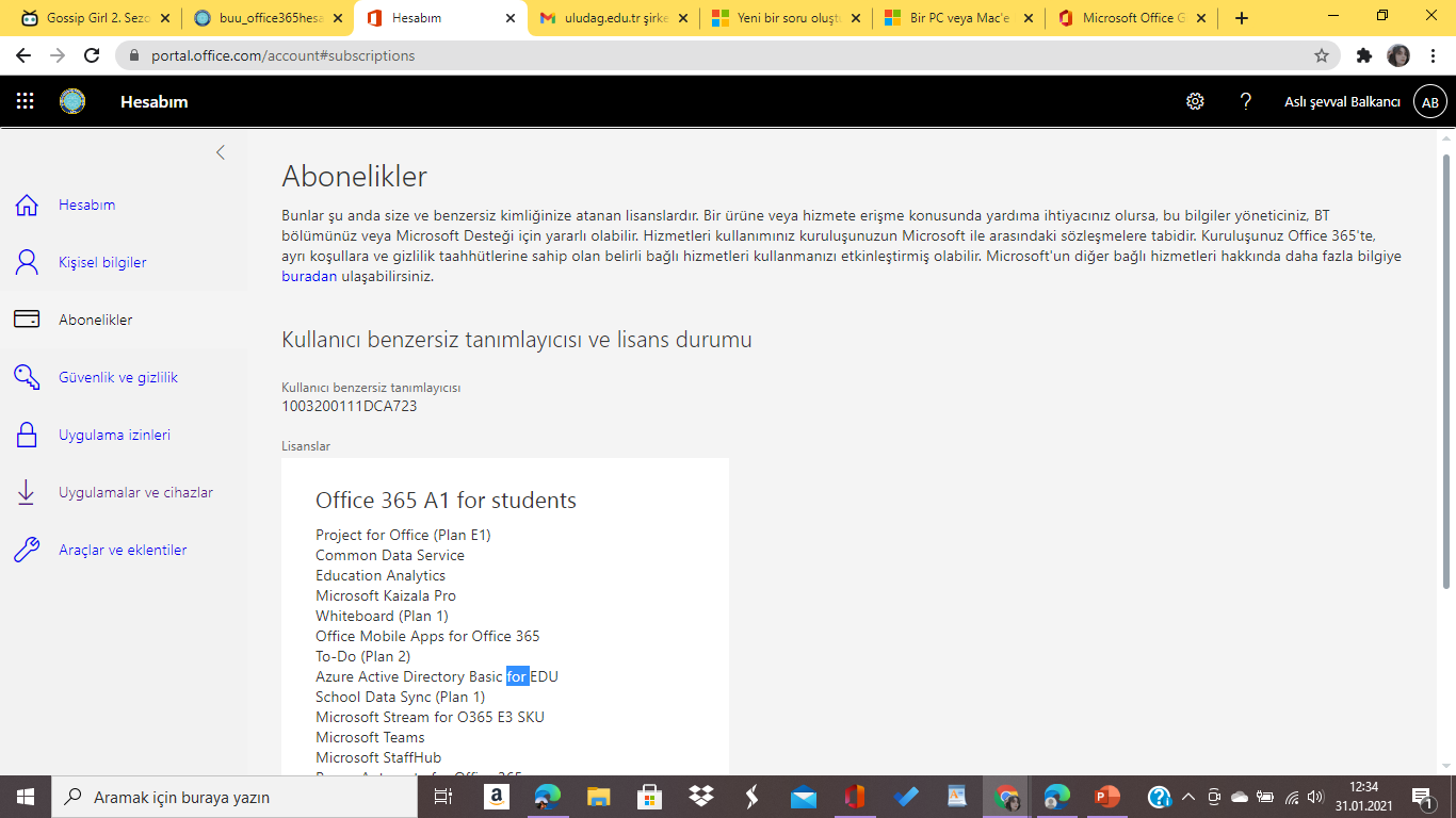 Kullanıcıların aboneliklerini, hesap ayarlarını ve faturalama bilgilerini yönetmelerine yardımcı olan Microsoft 365 özellikleri.