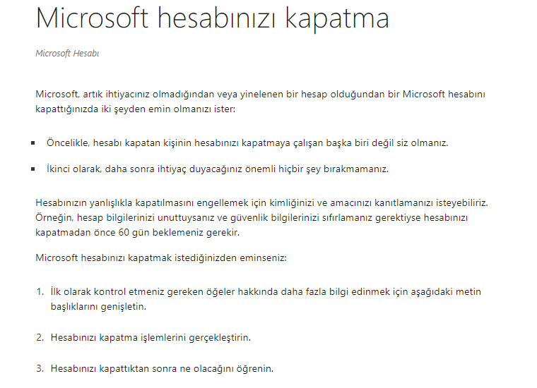 Microsoft hesabınızı kapatma konusunda daha fazla bilgiye buradan ulaşabilirsiniz.