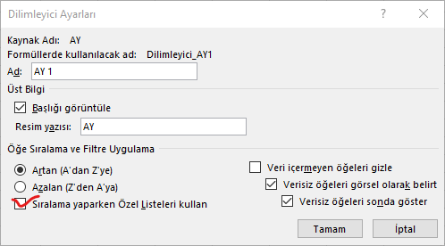 - Bu, dilimleyicideki ayların sırasını belirttiğiniz sıraya göre değiştirmelidir. Değişikliklerin etkili olması için bu değişikliği yaptıktan sonra pivot tabloyu veya dilimleyiciyi yenilemeniz gerekebilir.