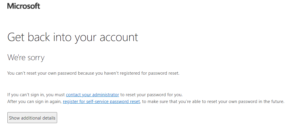 Merhaba. Ben bir üniversitede eğitim gören bir öğrenciyim. Microsoft'un öğrencilere sunmuş olduğu Office 365'i ücretsiz olarak kullanmak için okul e-posta adresimle kaydolduğum Microsoft hesabımın şifresini unuttum. Şifremi resetlemek istediğimde ise aşağıya eklediğim görseldeki bir hatayla karşılaşıyorum. Bu konuda acil yardıma ihtiyacım var. Lütfen en hızlı yoldan çözümlemem için yardımcı olur musunuz ? Teşekkürler.