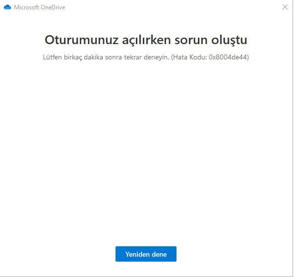 Hızlı cevabınız için teşekkürler. Hata raporunun paylaştığınız ekran görüntüsüne göre, OneDrive'a mevcut girişin hata kodu 0x8004de44 karşılaştığı görülüyor. Hata kodu 0x8004de44 web sayfası bağlamında belirtilmemiştir, ancak OneDrive'ın buluta bağlanmada sorun yaşadığını gösteren 0x8004de40 ve 0x8004de88 bazı benzer hata kodları buldum.
