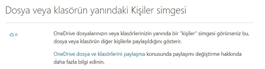 OneDrive'da bir dosya veya klasörün yanındaki küçük kişi simgesi genellikle dosya veya klasörün başkalarıyla paylaşıldığını gösterir.