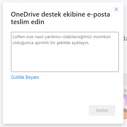 OneDrive'a aşağıdaki bağlantı aracılığıyla e-posta gönderebilirsiniz:https://go.microsoft.com/fwlink/p/?LinkId=528676