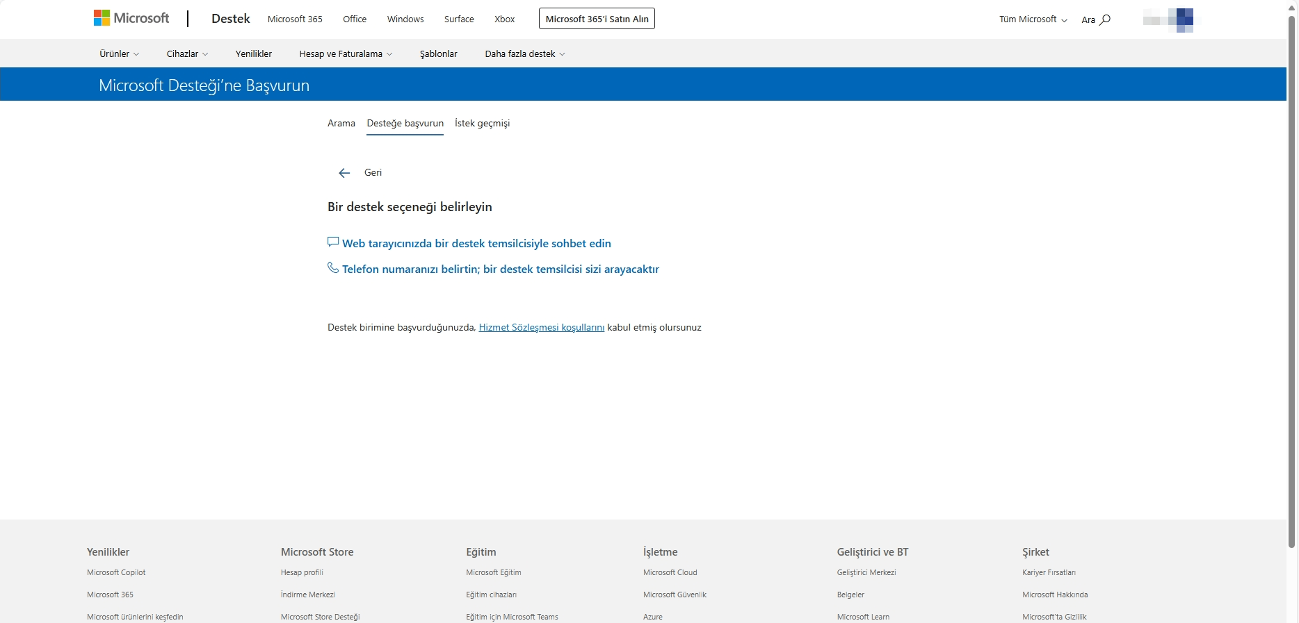 - Aşağıdaki Web sitesine gidin: İletişim - Microsoft Desteği.