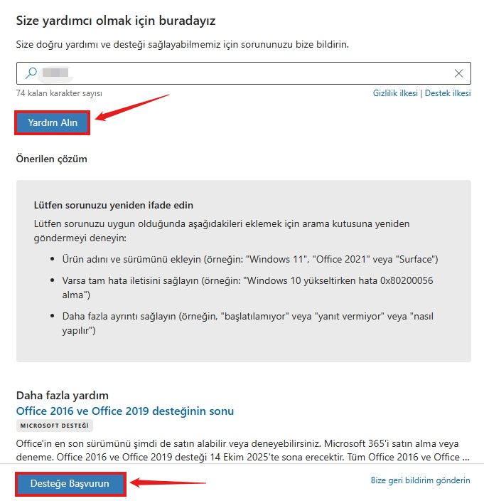 - Bu web sitesini ziyaret edin: Bize Ulaşın - Microsoft Desteği
