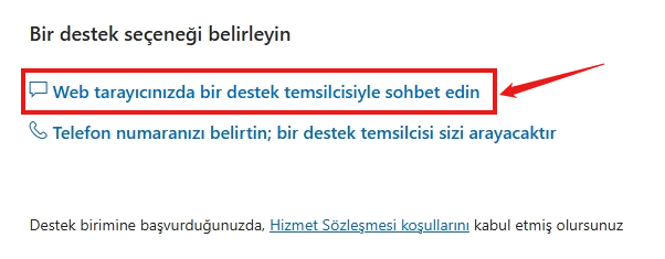 - Bir web tarayıcısında Bir destek temsilcisiyle sohbet et'i seçin.