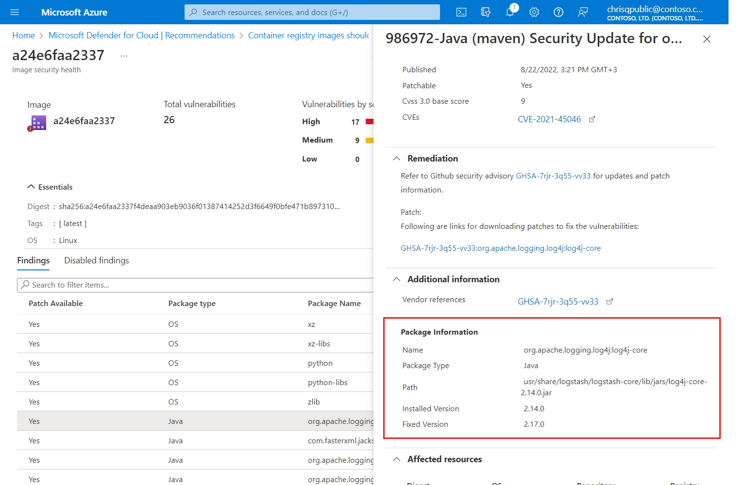 Yeni kapsayıcı görüntüleri Azure Container Registry gönderildiğinde tarama otomatik olarak tetikleniyor. Bulunan güvenlik açıkları Güvenlik Merkezi önerileri olarak ortaya çıkar ve izin verdikleri saldırı yüzeyini azaltmak için düzeltme eki uygulama bilgileriyle birlikte güvenli puana eklenir.