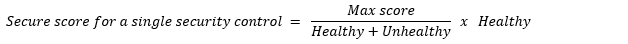 Birden çok abonelik ve bağlayıcı için birleştirilmiş puan, her abonelik ve bağlayıcı için bir ağırlık içerir. Bulut için Defender, abonelik başına birleştirilmiş iyi durumda ve iyi durumda olmayan kaynak sayısını ('Uygulanamaz' kaynakları hariç) kullanarak doğrusal bir ağırlık modeline dayalı olarak aboneliklerinizin ve bağlayıcılarınızın göreli ağırlıklarını belirler. Her abonelik ve bağlayıcı için geçerli puan, tek bir abonelik veya bağlayıcıyla aynı şekilde hesaplanır ve ardından ağırlığı uygulanır (bkz. denklem). Bir abonelik veya bağlayıcı belirli bir denetim için değerlendirmeye sahip değilse (sağlam veya sorunlu kaynak bulunmuyorsa), bu denetim, söz konusu abonelik veya bağlayıcı için puan hesaplamasının dışında tutulur. Bu durumda, ne denetimin geçerli puanı ne de maksimum olası puanı bu aboneliğin puanına katkıda bulunmaz. Kullanıcı arabiriminde gösterilen toplu güvenli puan, abonelik başına yüzdelerin veya denetim başına sayıların basit bir aritmetik ortalaması değildir; abonelikler arasında ağırlıklı bir toplamdır. Bu nedenle, kullanıcı arabiriminde görüntülenen denetim başına kaynak numaraları, birden çok abonelikte genel güvenlik puanını el ile yeniden derlemek için kullanılamaz.