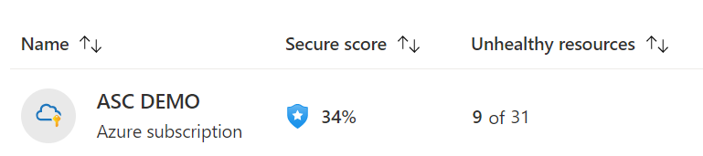 SecurityResources | where type == 'microsoft.security/securescores/securescorecontrols' | extend SecureControl = properties.displayName, unhealthy = properties.unhealthyResourceCount, currentscore = properties.score.current, maxscore = properties.score.max | project SecureControl , unhealthy, currentscore, maxscore