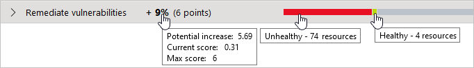 | Geçerli puan | Bu denetimin geçerli puanı. Geçerli puan = [Kaynak başına puan] * [İyi durumdaki kaynak sayısı] Her denetim toplam puana katkıda bulunur. Bu örnekte denetim, geçerli toplam puana 3,33 puan katkıda bulunuyor. |