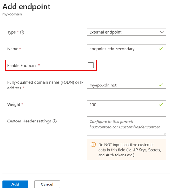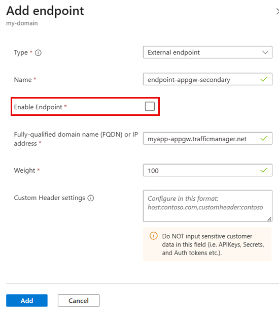 myapp-appgw.trafficmanager.net)Uç Noktayı Etkinleştir: Temizlendi (devre dışı)