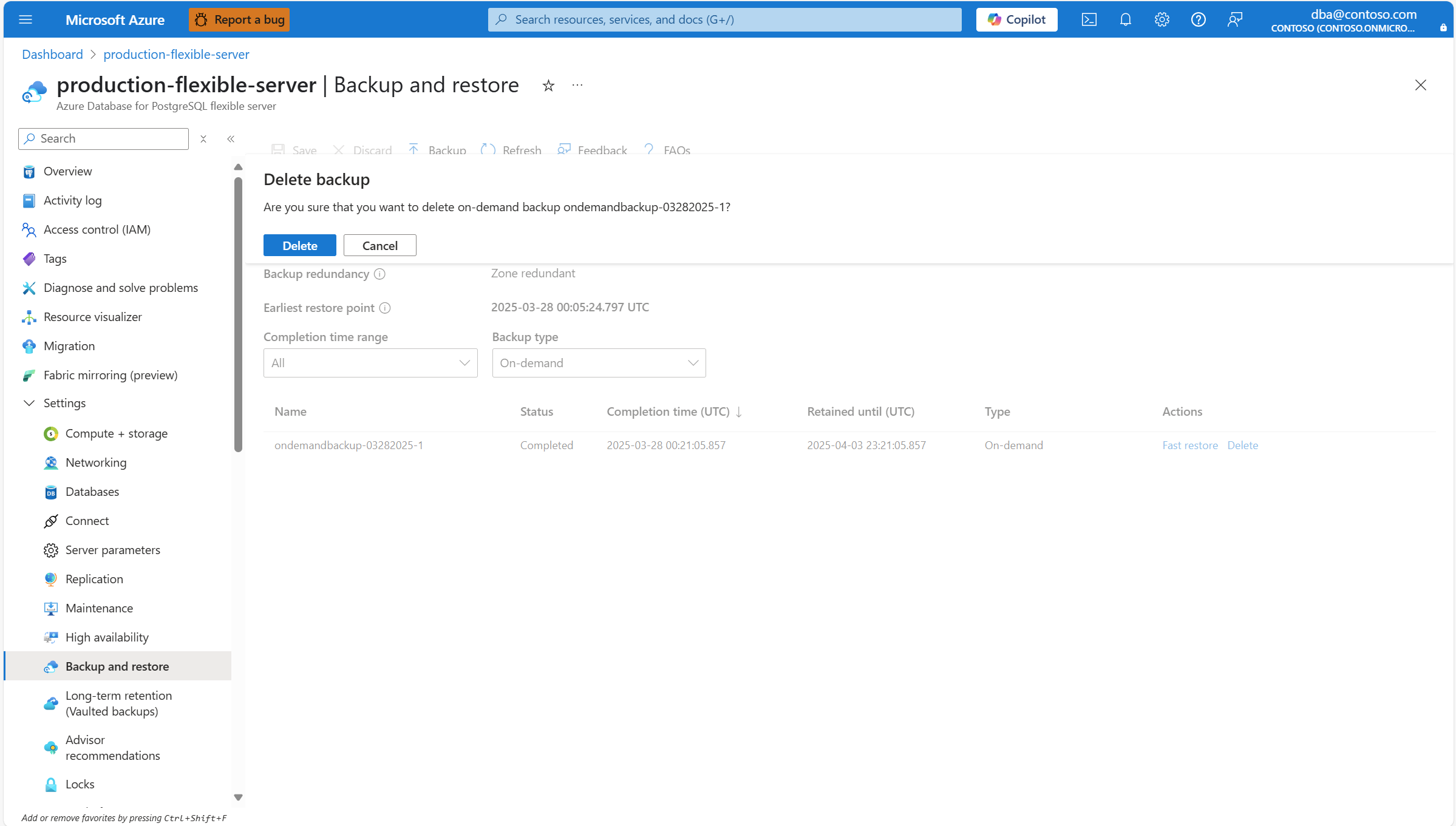 Bu makalede PostgreSQL için Azure Veritabanı esnek sunucu örneğinin isteğe bağlı yedeklemelerini silmek için adım adım yönergeler sağlanır.