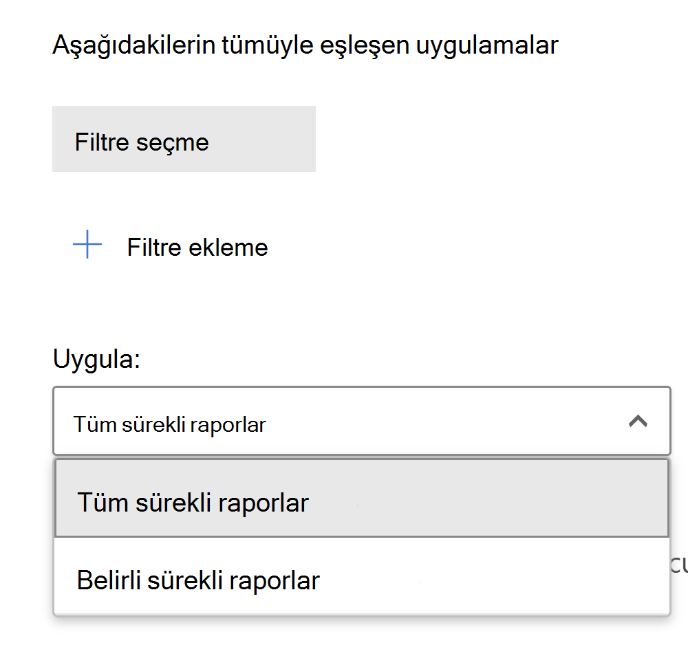 Hangi bulunan uygulamaların bu ilkeyi tetikleyeceğini ayarlamak için filtreler ekleyin.