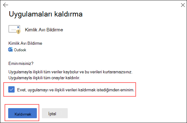 Açılan Uygulamaları kaldır onay açılır penceresinde Evet, uygulamayı ve ilişkili verileri kaldırmak istediğimden eminim'i ve ardından Kaldır'ı seçin.