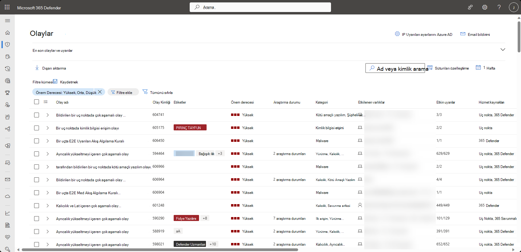 Olayların listesini incelemek ve bunların atama ve araştırma açısından önemini önceliklendirmek için şunları yapabilirsiniz: