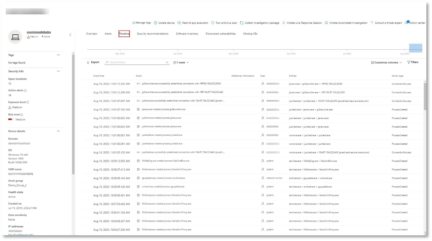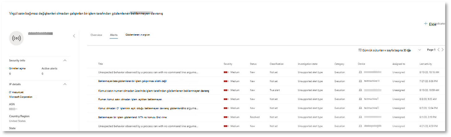 - Etkilenen kullanıcılar ve cihazlar. Göstergeler diğer cihazlarda bulunursa, bu diğer cihazlar da listelenir.