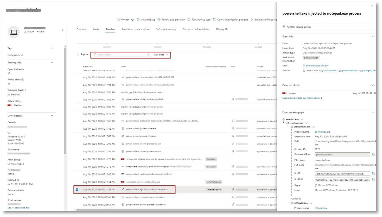 İsteğe bağlı dosyasız PowerShell saldırı benzetimi kimlik bilgisi erişim aşamasına ulaşmış gerçek bir saldırıysa, oluşturulan uyarılardan ve etkilenen varlıklardan zaten bildiklerinizi kullanarak ağdaki olayları ve kayıtları proaktif olarak aramak için araştırmanın herhangi bir noktasında gelişmiş avcılığı kullanabilirsiniz.