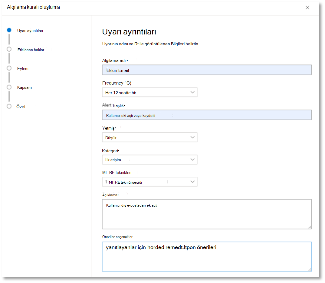 Bir sonraki kullanıcıya bu algılama kuralı uyarısı hakkında bilinçli bir karar vermeye yardımcı olmak için alanları net bir şekilde doldurduğunuzdan emin olun