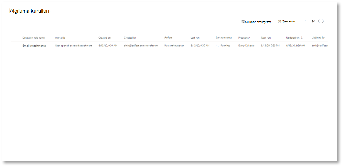 Algılama kuralı oluştur'u seçerseniz ve sorgunuzda söz dizimi hataları varsa, algılama kuralınız kaydedilmez. Hata olmadığından emin olmak için sorgunuzu bir kez daha denetleyin.