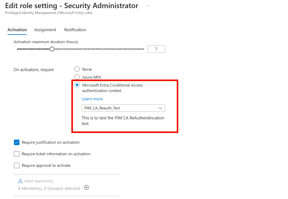 Rolün PIM ayarlarında kimlik doğrulama bağlamını yapılandırın.