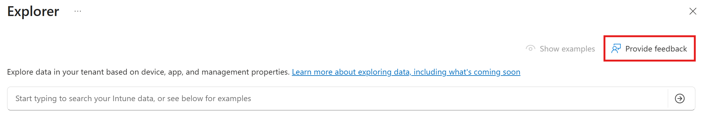 Bu veri keşfetme özelliği sürekli olarak geliştiriliyor. Keşfedebileceğiniz daha fazla Intune veri alanı, her alanda daha fazla veri kapsamı, daha fazla sorgulama özelliği ve Copilot ile etkileşim, daha fazla Intune veri kaynağı ve daha fazla eylem eklemeye devam ediyoruz. Görmek istediğiniz özellikler ve ihtiyacınız olan sorguların eksik olması dahil olmak üzere iyileştirmeler yaparken geri bildiriminizi istiyoruz.