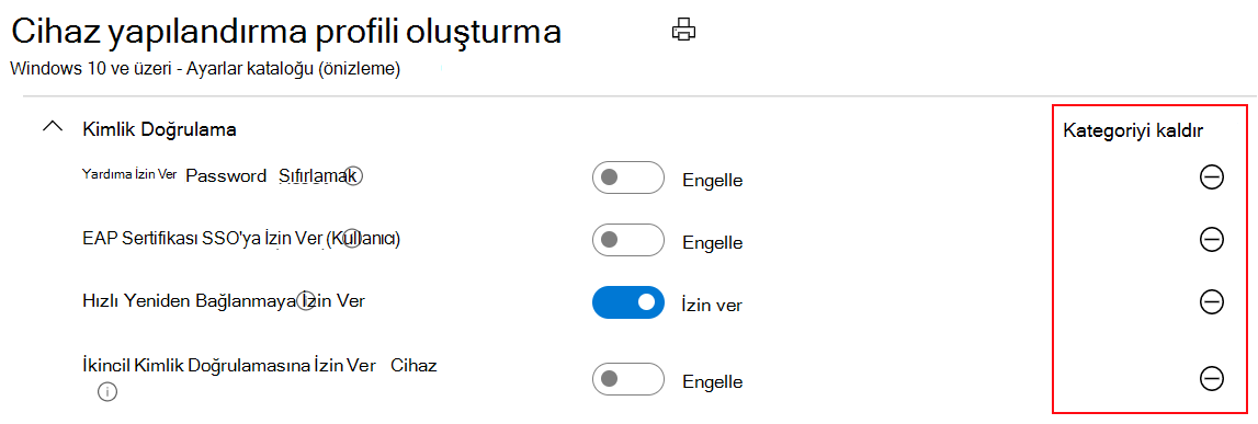 Ayarlar kataloğunu kullanarak yapılandırabileceğiniz popüler özellikler hakkında bilgi için bkz. Intune'daki Ayarlar Kataloğu'nu kullanarak tamamlayabileceğiniz görevler.