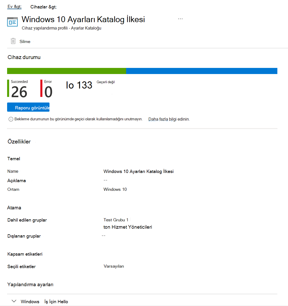 İlkeyi oluşturduğunuzda, bir cihaz yapılandırma profili oluşturur. Daha sonra bu profili kuruluşunuzdaki cihazlara atayabilir veya dağıtabilirsiniz.