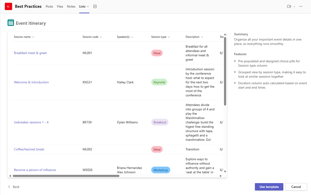 Templates in Lists are tailored to common information tracking scenarios for users. Each template comes with a predefined list structure, form layouts, and formatting options at both a list view and a details view level to help users get started quickly. After selecting a template, users get a preview of what the list will look like, along with some sample data.