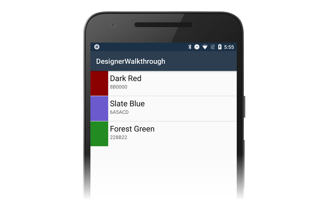 Bu makale, Xamarin.Android Tasarım Aracı kılavuzudur. Küçük renkli bir tarayıcı uygulaması için kullanıcı arabirimi oluşturmayı gösterir; bu kullanıcı arabirimi tamamen Tasarım Aracı oluşturulur.