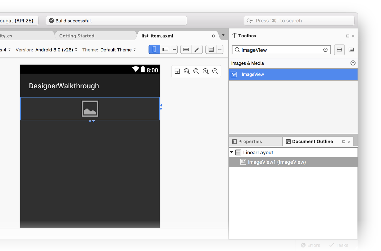Bu makalede, temel bir uygulama için kullanıcı arabirimi oluşturmak üzere Visual Studio'da Xamarin.Android Tasarım Aracı kullanma işlemi izlenmiştir. Listedeki tek bir öğe için arabirimin nasıl oluşturulacağını ve pencere öğelerinin nasıl ekleneceğini ve görsel olarak nasıl düzenleneceğini gösterdi. Ayrıca kaynakları atama ve ardından bu pencere öğelerinde çeşitli özellikleri ayarlama işlemleri de açıklanmıştır.