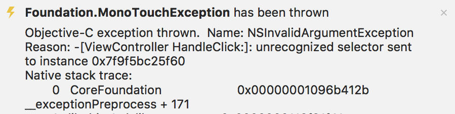 Bir olay işleyicisi belirtildikten sonra, ilgili görünüm denetleyicisi sınıfına aynı ada sahip bir yöntem eklenmelidir. Aksi takdirde, düğmeye dokunulduğunda bir unrecognized selector özel durum oluşur: