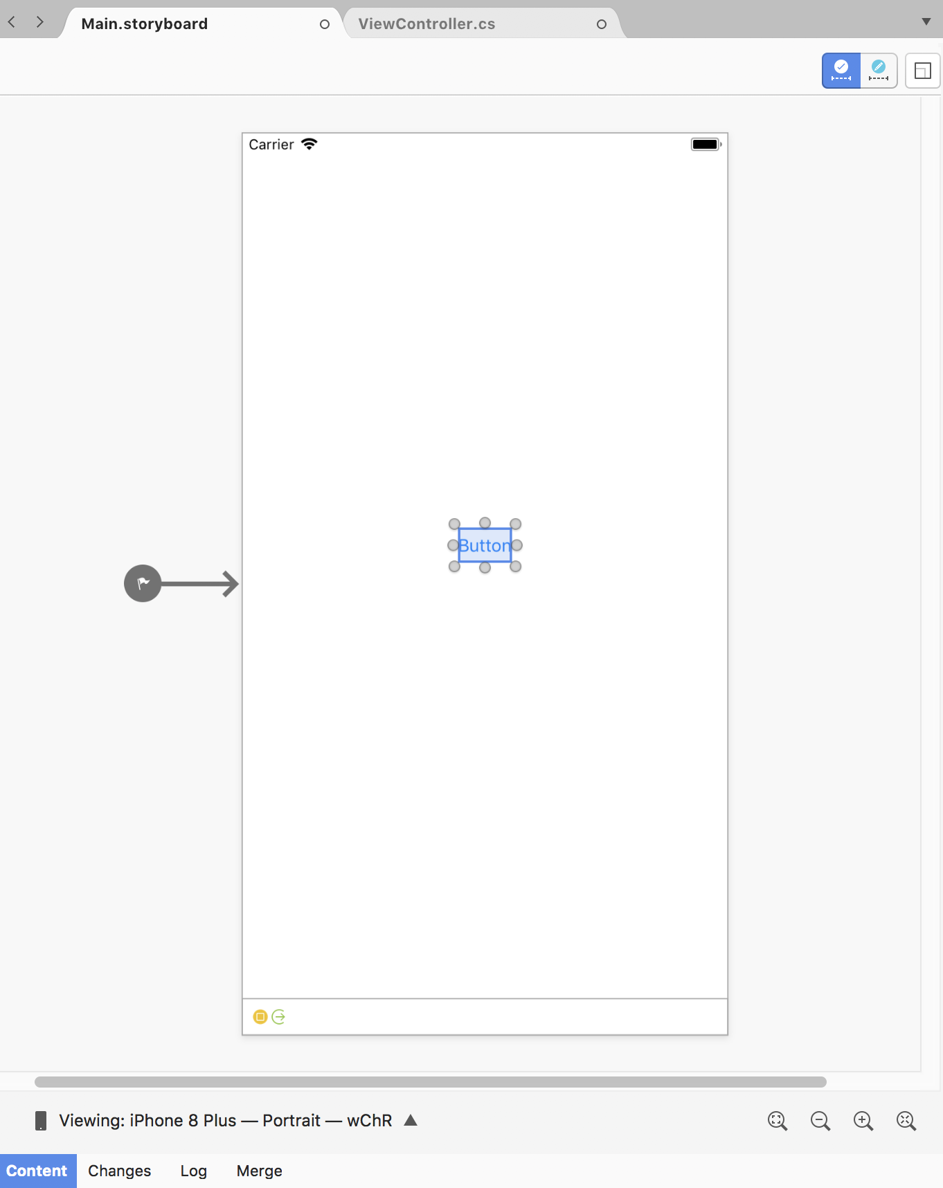 Mac için Visual Studio ile oluşturulan Xamarin.iOS projeleri bir görsel taslak içerir. Görsel taslak içeriğini görüntülemek için Çözüm Bölmesi'nde .storyboard dosyasına çift tıklayın: